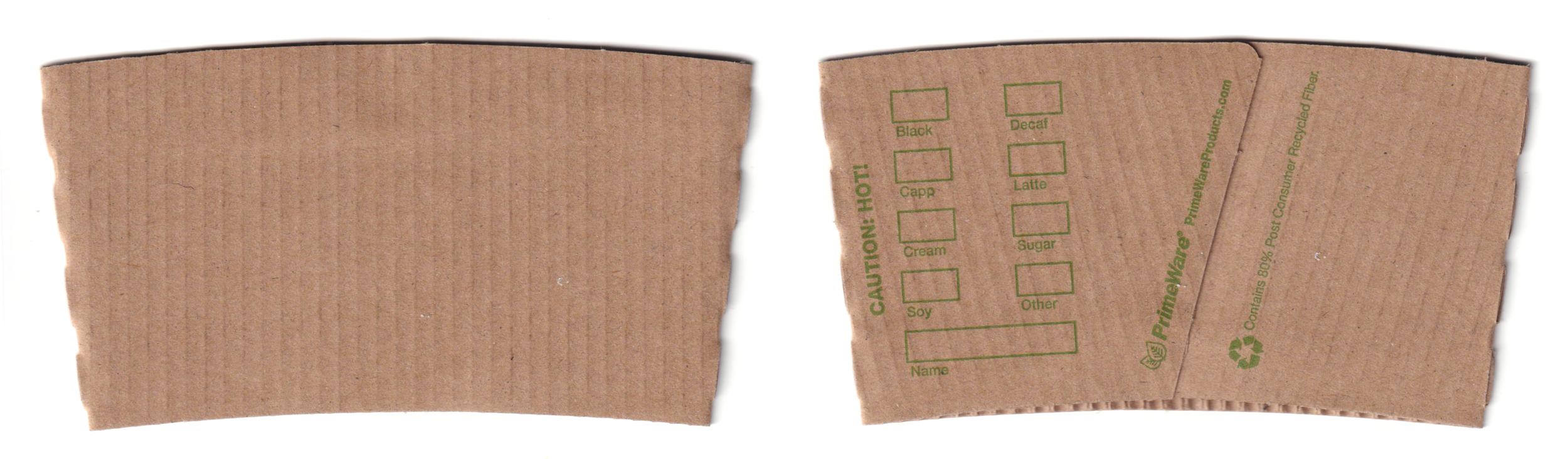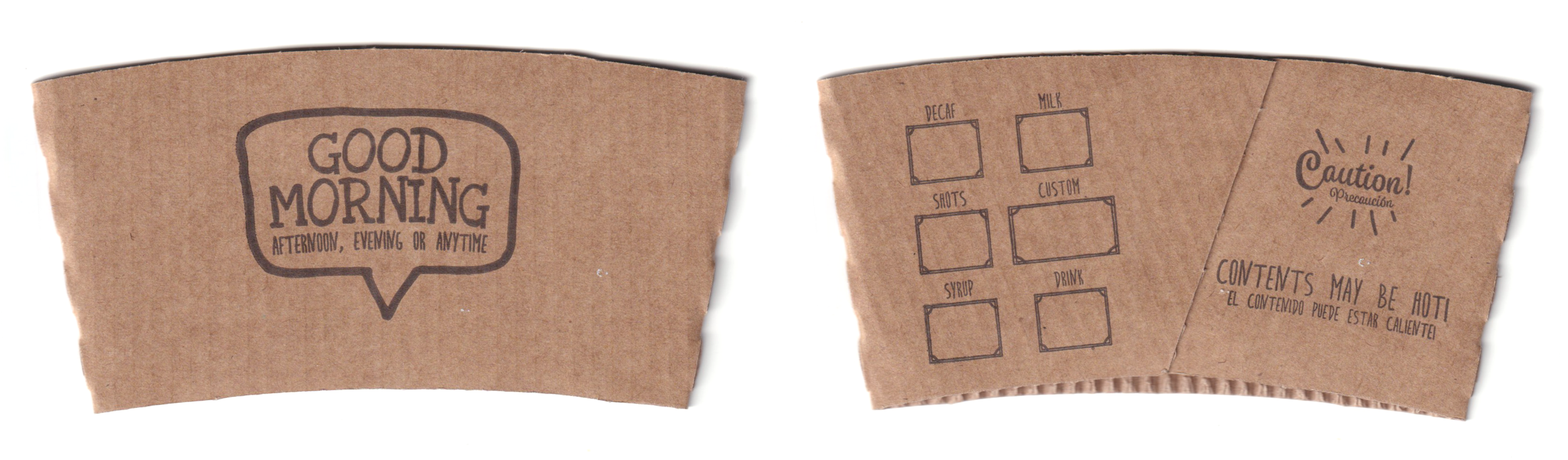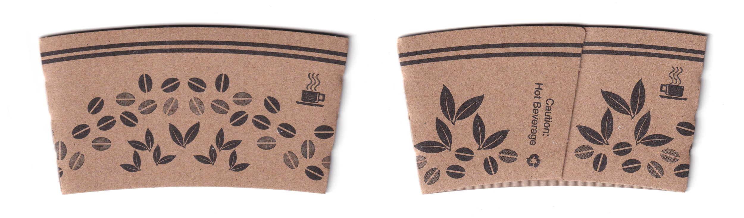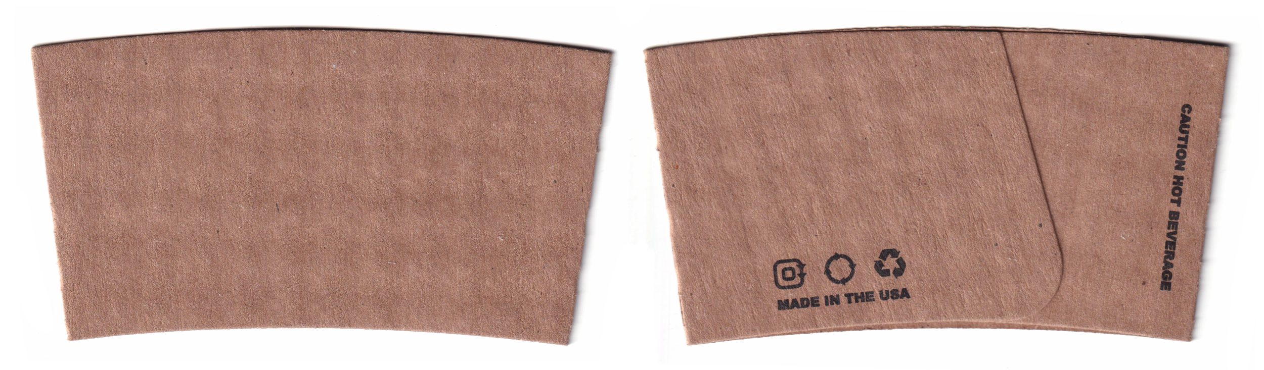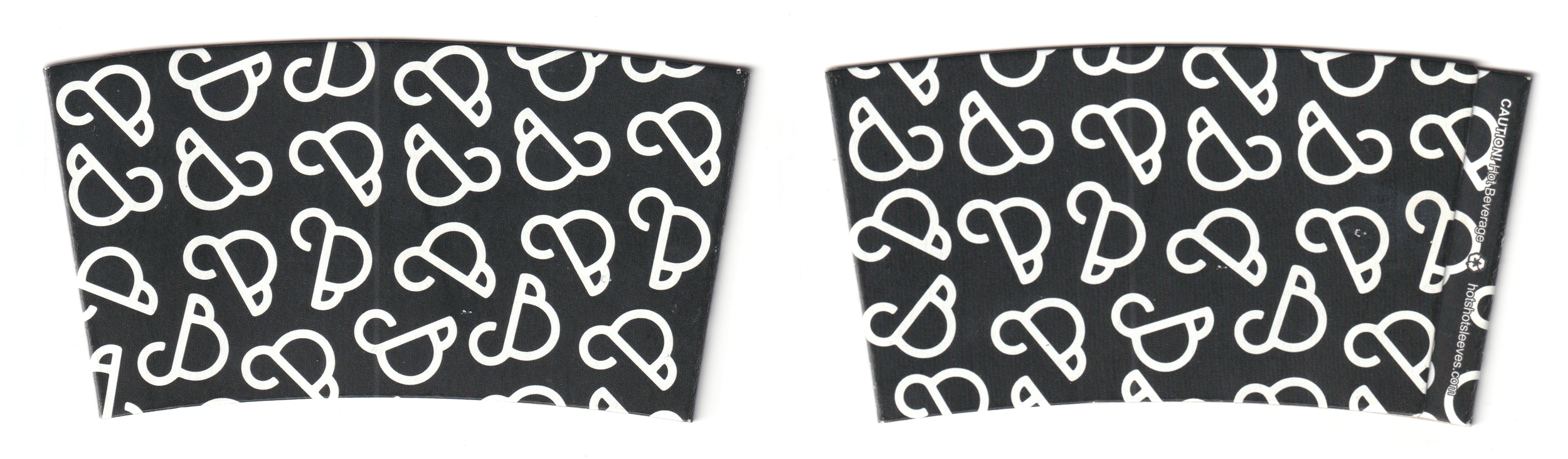 These sleeves probably seem like the least interesting category in my collection, but I feel it is important to document them anyway. They are easy to order online in bulk for small businesses that don’t have the budget to brand every drink that comes out of their kitchen, or businesses that can’t keep up with demand. Some cafes I have been to will use them when they run out of their custom sleeves and are waiting for a restock. I don’t keep track of where these come from because many businesses have the same ones - but I do my best to track each unique design that I see, as some do have subtle design elements and different textures. As you see more and more cup sleeves, you’ll realize that many custom ones are printed on these “bases” and some of the companies even offer the custom printing directly.