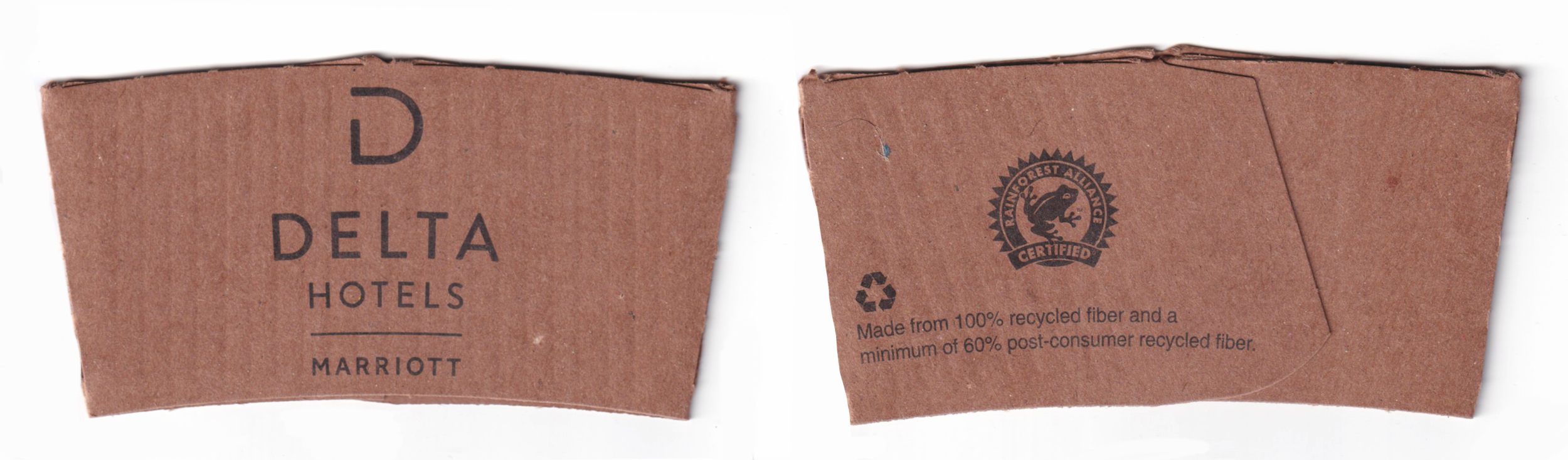 Did you know hotels sometimes have their own cup sleeves? I actually had this in mind back when I started collecting, but I thought they would be much more common than they actually are. I have found that fewer and fewer hotels have been making custom branded sleeves, and when they do, they are almost like a mini generic for the entire company or have very little branding at all. There are still a select few hotels that have a complimentary coffee station in their lobby, but only about half of the time will they have something unique to their hotel printed on them.