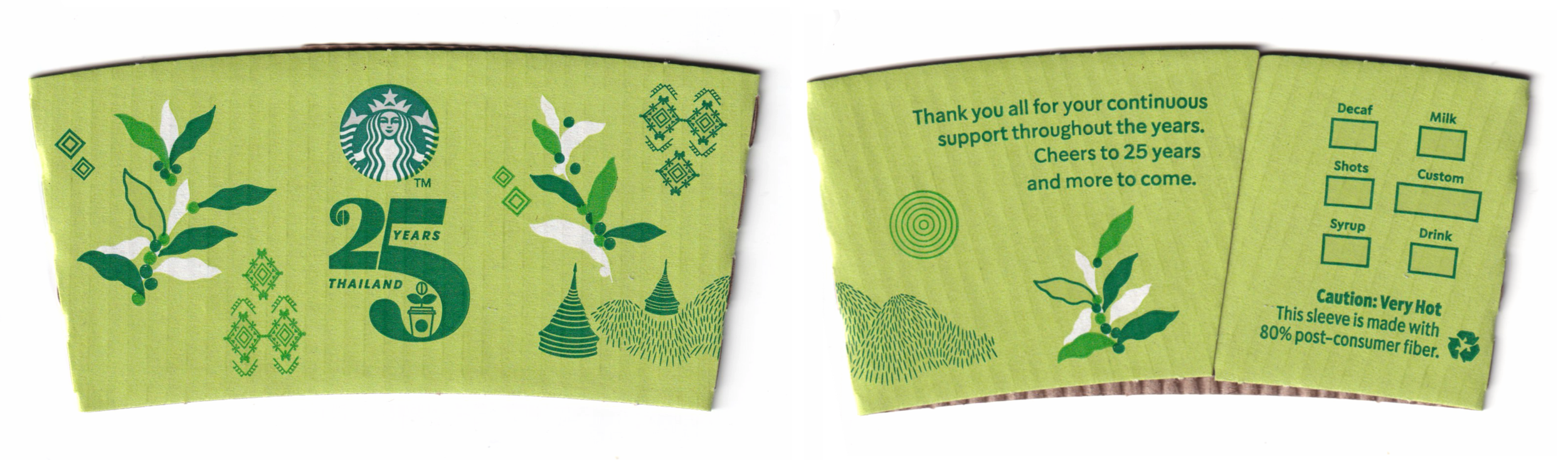 Starbucks gets its own separate page from other large brands due to its international hold on coffee culture across the world. There are all sorts of commemorative sleeves released every year, each country with unique designs, and they have become quite collectible. Listings online for Starbucks gift cards (the collecting of which is a particularly popular hobby) often include these commemorative matching sleeves to go with them, and they get quite pricey. I don’t spend much money on this hobby, but if I had a large budget to allocate to my collection, I would probably try to pick up as many international Starbucks sleeve releases as possible since they’re so beautiful and interesting.